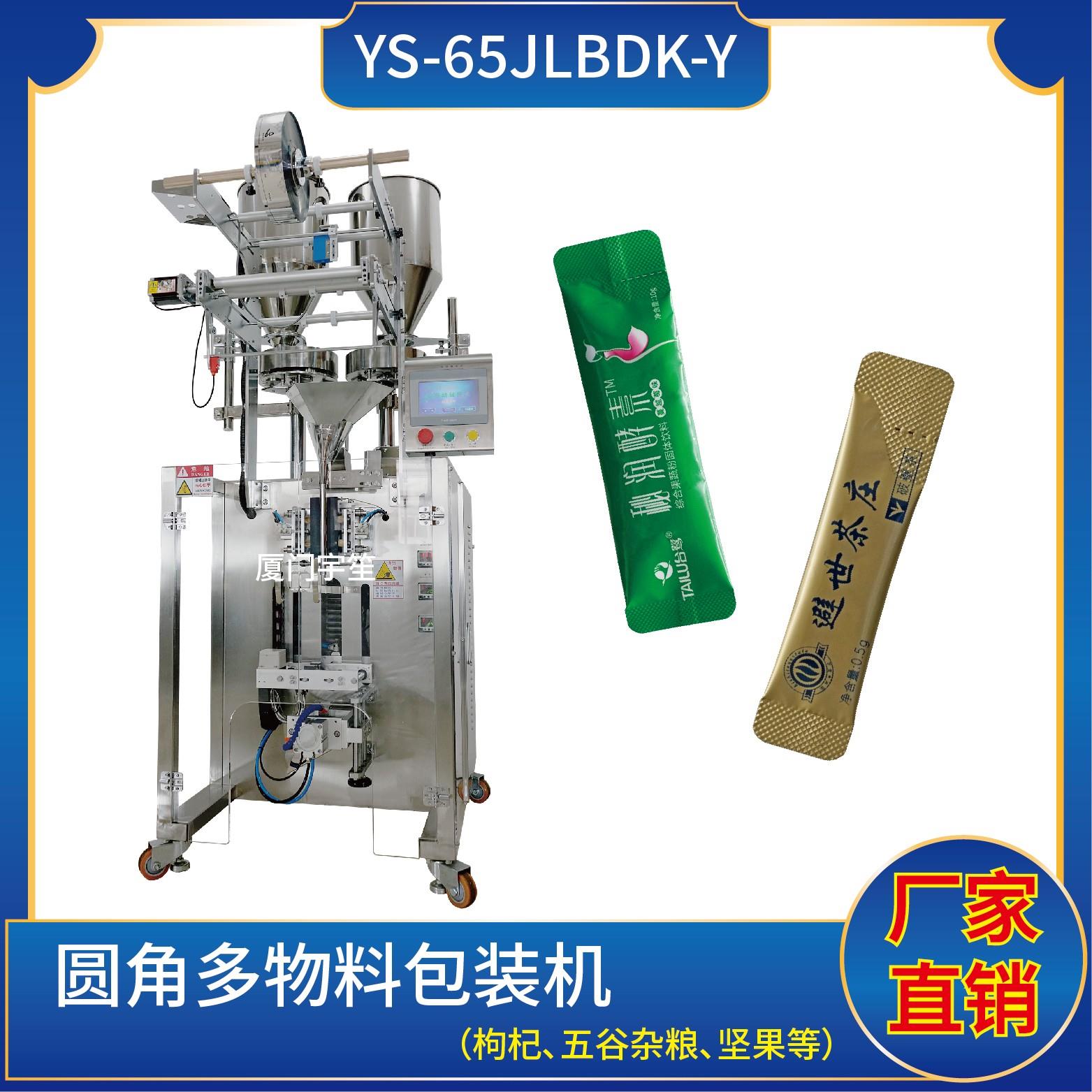 YP-65JLBDK-Y 圓角顆粒多物料包裝機特 點 1、適用于食品、醫(yī)藥、化工、化妝品行業(yè)中顆粒物品的計量包裝。2、可自動完成制袋、計量、下料、封合、分切、計數(shù)、且可根據(jù)客戶要求配置打印批號等功能。3、觸摸屏操作,PLC 控制,驅動步進電機控制袋長,性能穩(wěn)定、調整方便、檢測準確。智能式溫控儀,PID調節(jié),保證將溫度的誤…