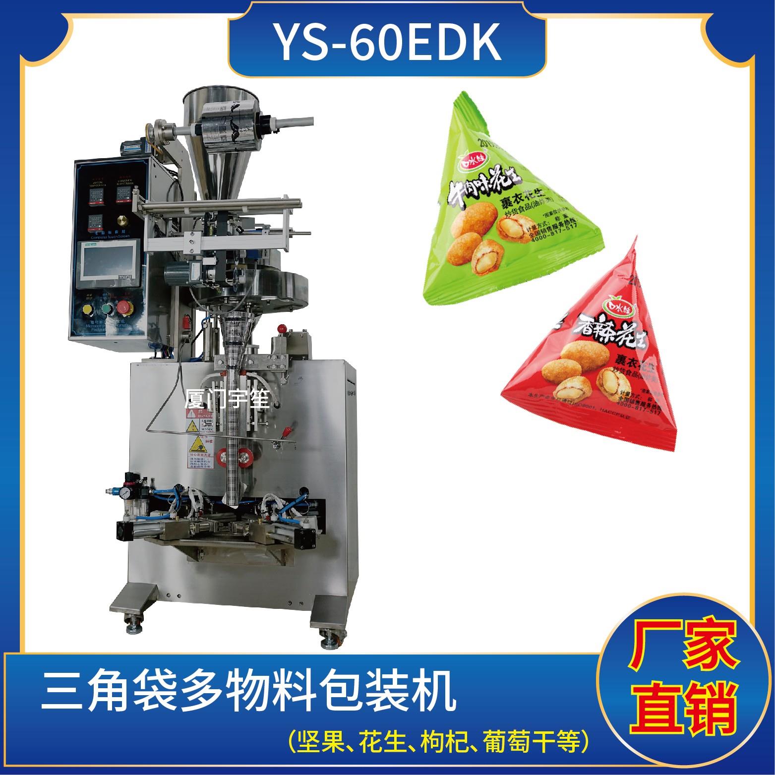 YP-60EK 三角袋包裝機1、適用于食品、醫(yī)藥、化工、化妝品行業(yè)中顆粒物品的計量包裝。2、可自動完成制袋、計量、下料、封合、分切、計數(shù)、且可根據(jù)客戶要求配置打印批號等功能。3、觸摸屏操作,PLC 控制,驅(qū)動步進電機控制袋長,性能穩(wěn)定、調(diào)整方便、檢測準確。智能式溫控儀,PID調(diào)節(jié),保證將溫度的誤差范圍控制在1℃以內(nèi)。…
