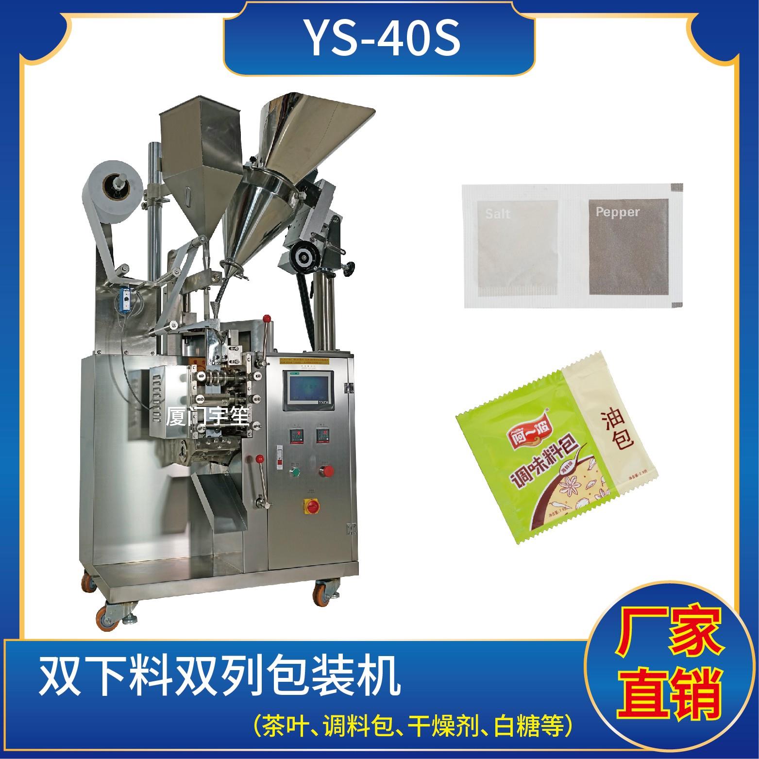 YS-40AK 三邊封顆粒自動包裝機特 點 1、適用于方便面行業(yè)湯包,干燥劑,沖劑,碎茶等小顆粒狀物品包裝。2、可自動完成制袋、計量、充填、封合、分切及計數(shù)等功能。3、包裝材料:茶葉濾紙、復(fù)合膜、無紡布。封口方式:三邊封技術(shù)參數(shù) 計量范圍:10 - 40 g(0.6 ~ 33 ml)制袋尺寸:長 ( L ) : 40 - 110 mm …