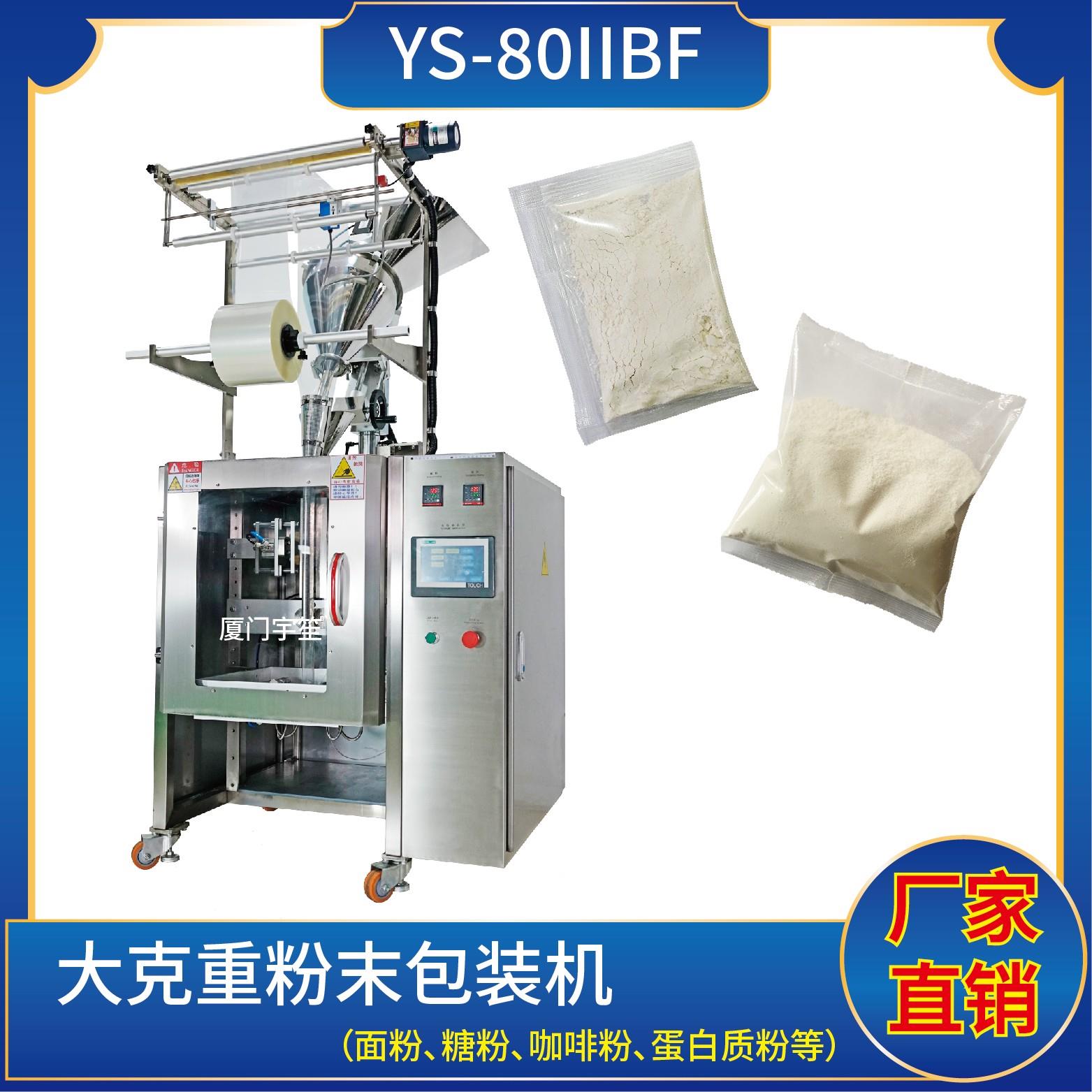 YS- 80IIBF 背封粉末包裝機特 點 1、適用于食品、醫(yī)藥、化工、化妝品行業(yè)中顆粒、粉劑、液體、醬料等物品的計量包裝。2、可自動完成制袋、計量、下料、封合、分切、計數(shù),可根據(jù)客戶要求配置打印批號等功能。3、觸摸屏操作,PLC控制,伺服電機控制袋長,性能穩(wěn)定、調(diào)整方便、檢測準確。智能式溫控儀,PID調(diào)節(jié),保證將溫度的…