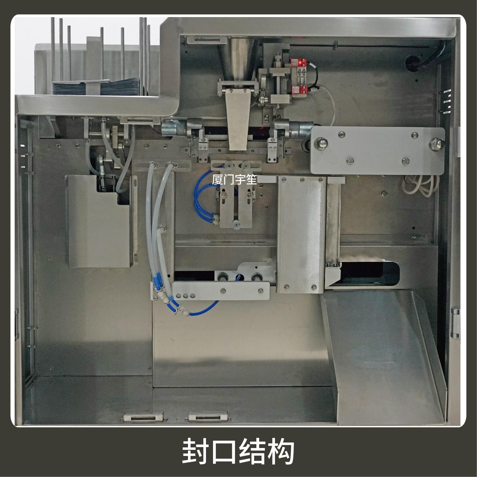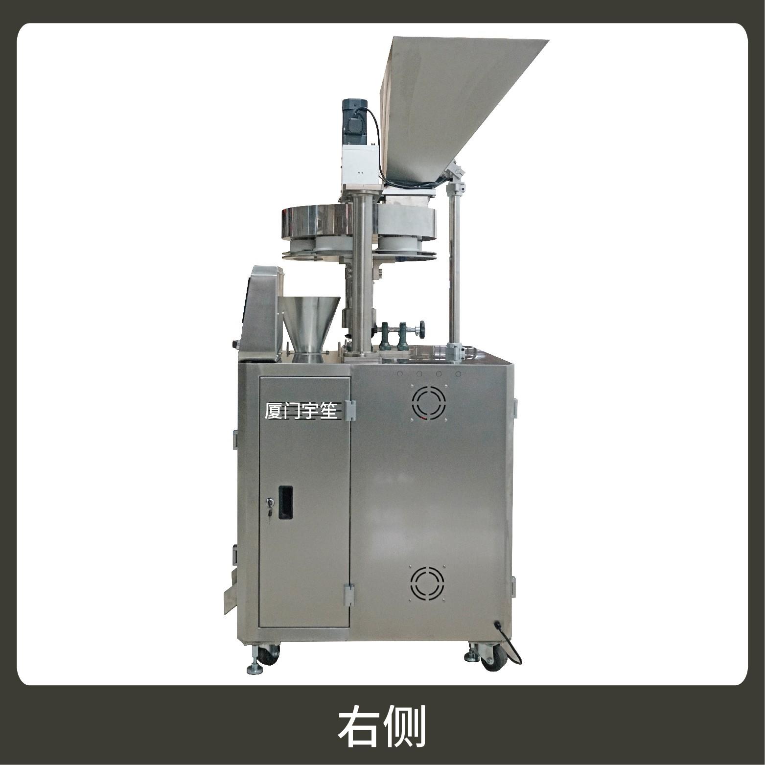 2、調(diào)試方便,占用空間小。包裝流程全自動(dòng),無(wú)需人工操作??筛鶕?jù)充填物料的性質(zhì)選配不同的下料結(jié)構(gòu)。