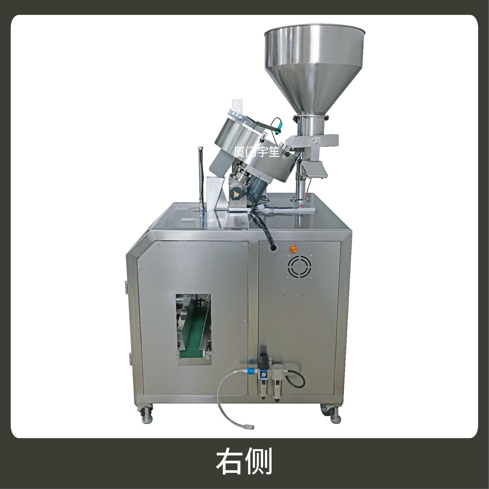 2、包裝流程全自動,無需人工操作,可抽真空、充氮?dú)?,組合下料??筛鶕?jù)充填物料的性質(zhì)選配不同的下料結(jié)構(gòu),且可根據(jù)客戶要求配置打印批號等功能。