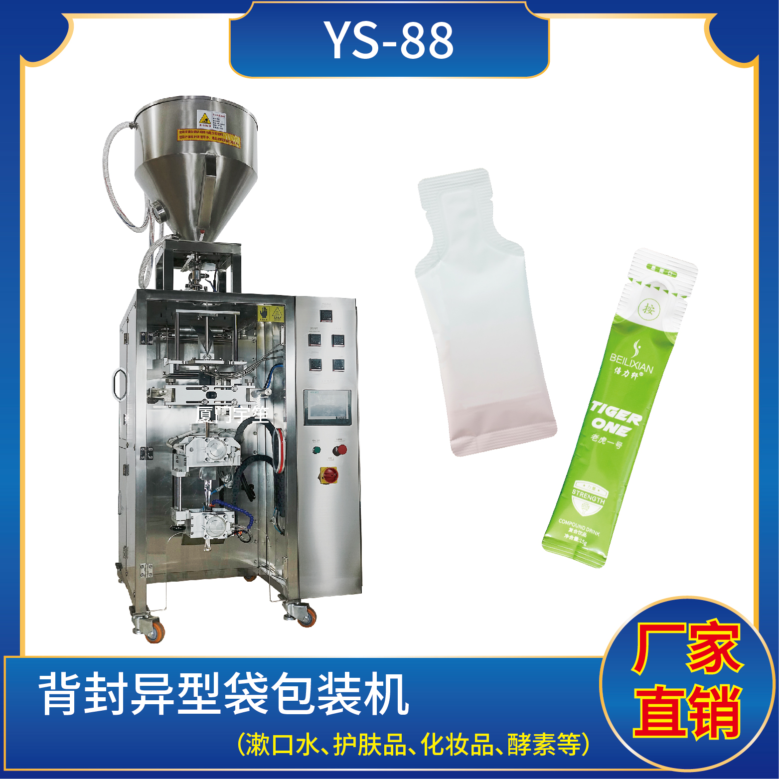 適用于各行業(yè)中酵素、果汁、漱口水、洗護(hù)用品、染發(fā)劑、化妝品小樣等醬料、液體物品的異形袋計(jì)量包裝。