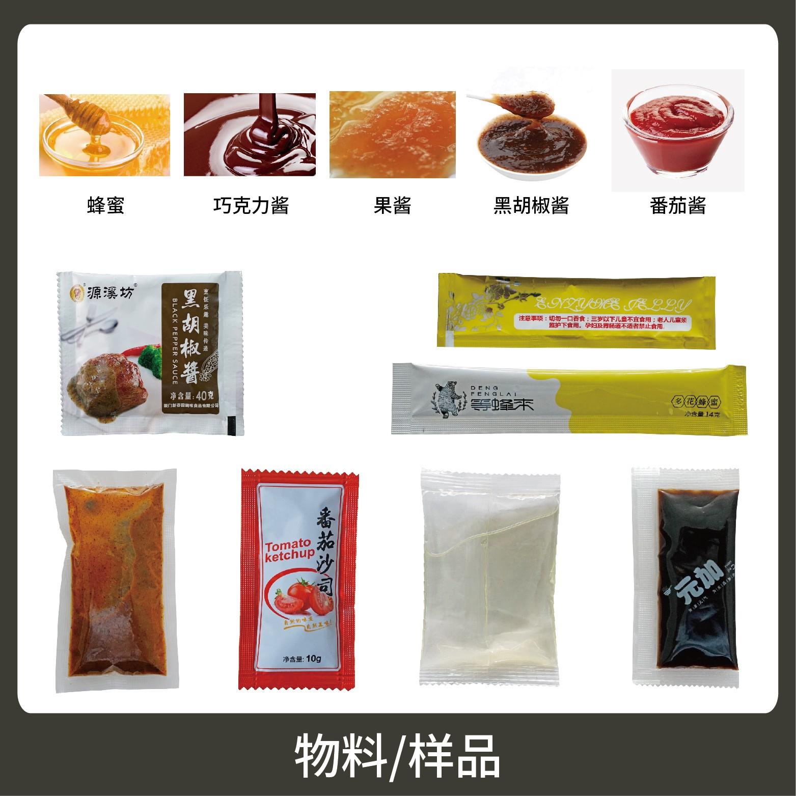 適用于食品、醫(yī)藥、化工、化妝品行業(yè)中液體、醬料物品的計量包裝,如:黑胡椒醬、辣椒醬、番茄醬等。